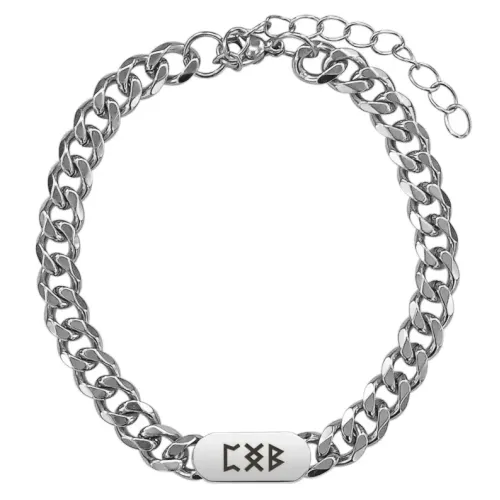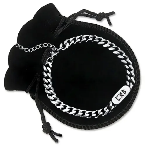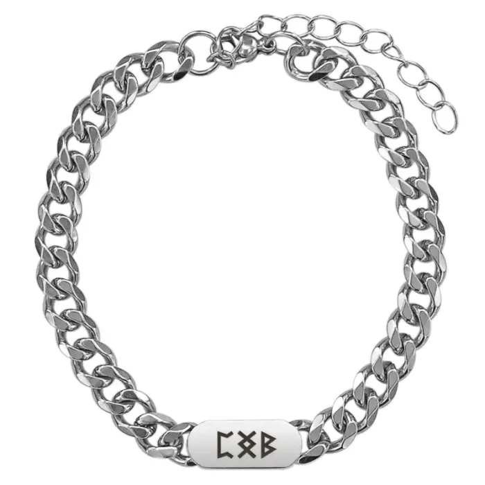 Браслет-цепь из нержавеющей стали с лазерной гравировкой рунической формулы.