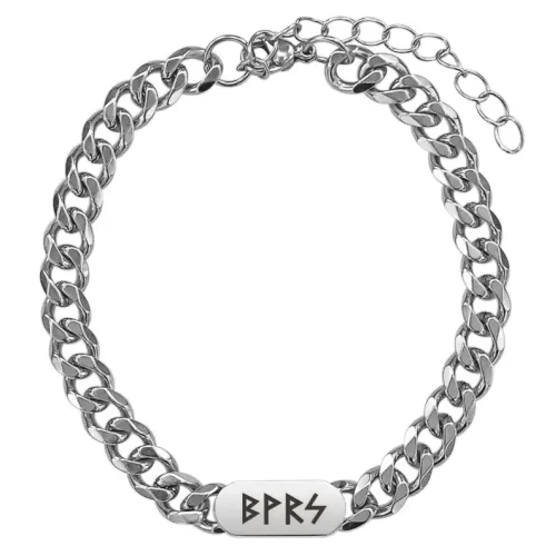 Браслет-цепь из нержавеющей стали с лазерной гравировкой рунических символов.