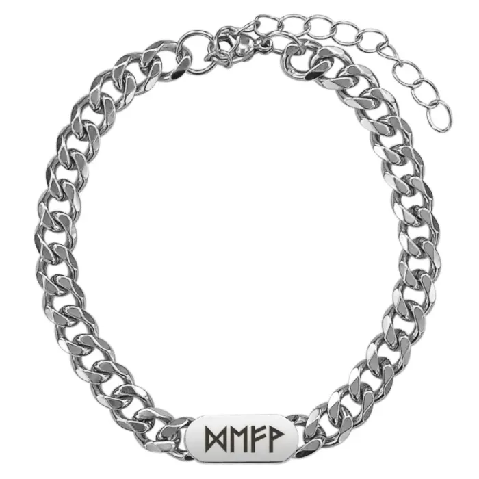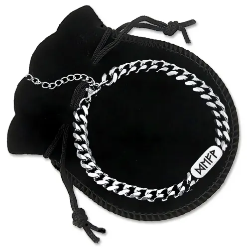 Браслет из нержавеющей стали с лазерной гравировкой рунической формулы.