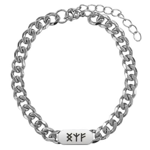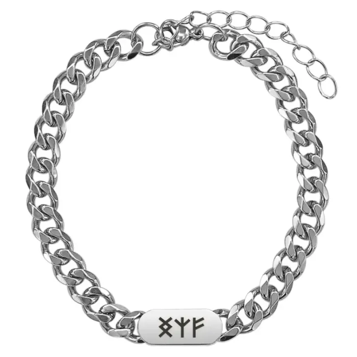 Браслет-цепь из нержавеющей стали с лазерной гравировкой рун.