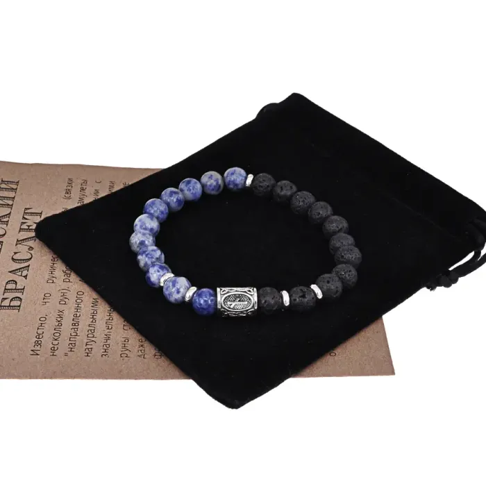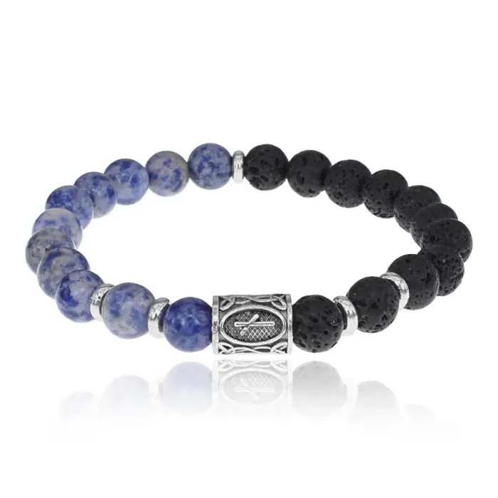 Стрейч-браслет с руной Наутиз и камнями Содалит и Лава.