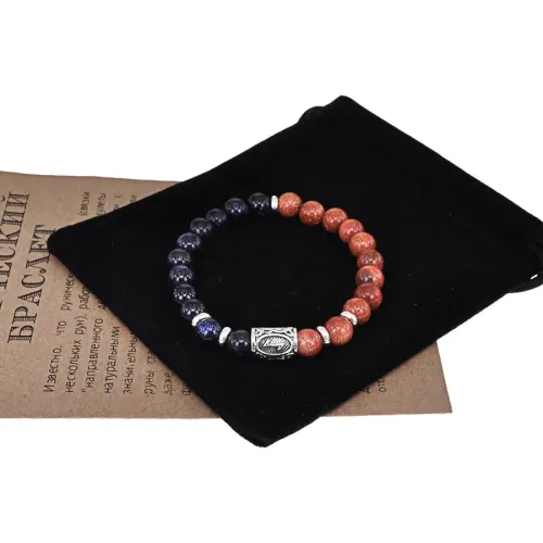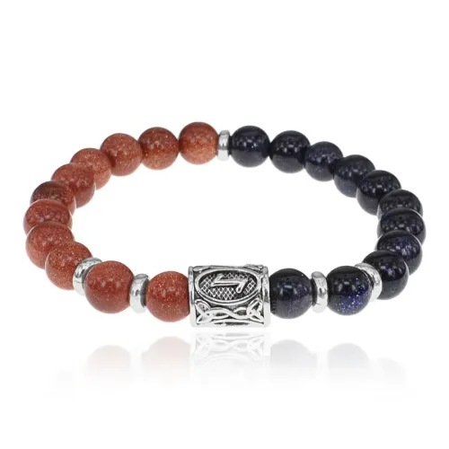 Рунический стрейч-браслет с руной Эйваз и камнями синий и коричневый авантюрин.