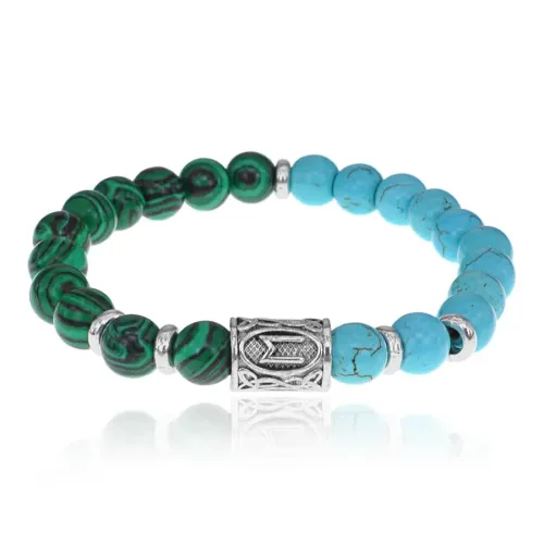 Рунический стрейч-браслет с символом Эваз, изготовленный из натуральных камней.
