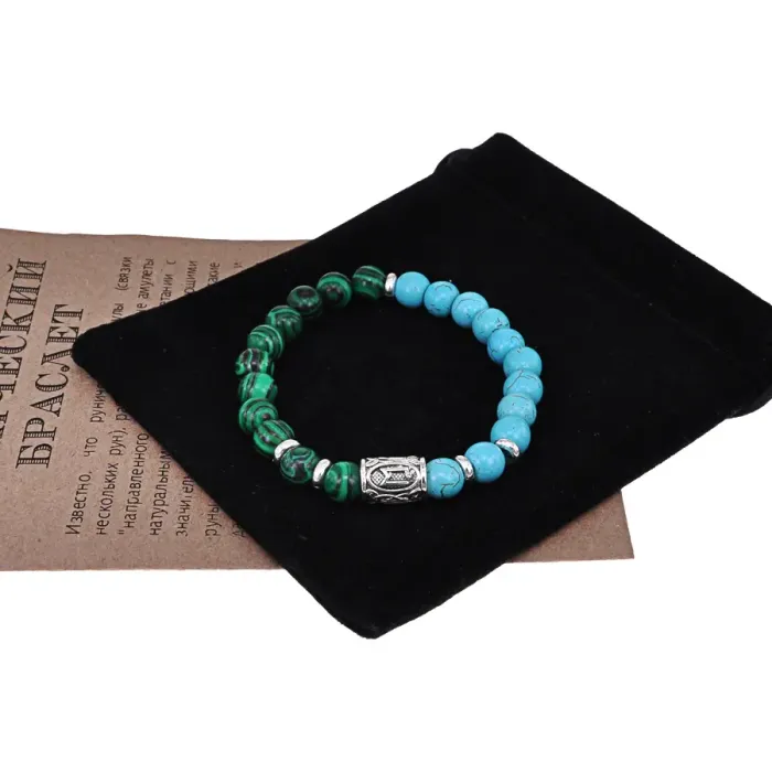 Материал и изготовление: Натуральные камни: малахит и бирюза. Диаметр бусин — 8 мм.
