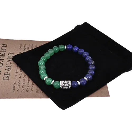 Материал и изготовление: Натуральные камни: нефрит и лазурит. Диаметр бусин 8 мм.