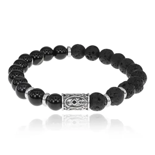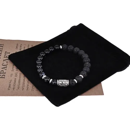 Материал и изготовление: Изготовлен из черного агата и лавы.