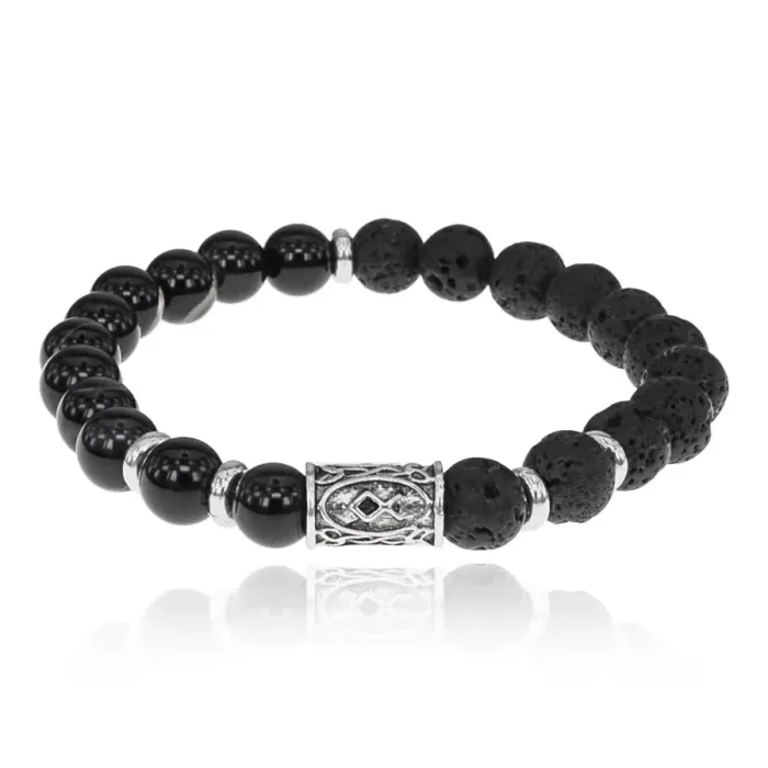 Рунический стрейч-браслет с руной Одал, изготовленный из камней.