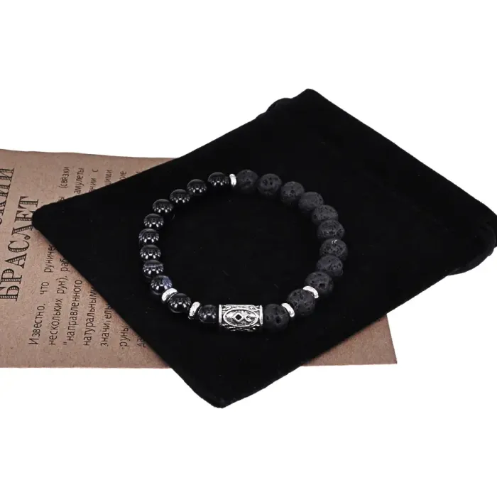 Размеры и комплектация: Диаметр бусин 8 мм, внутренний диаметр браслета около 5,5 см. В комплекте бархатный мешочек и буклет с описанием значений рун и камней. Упаковка — прозрачный пакет с еврослотом.