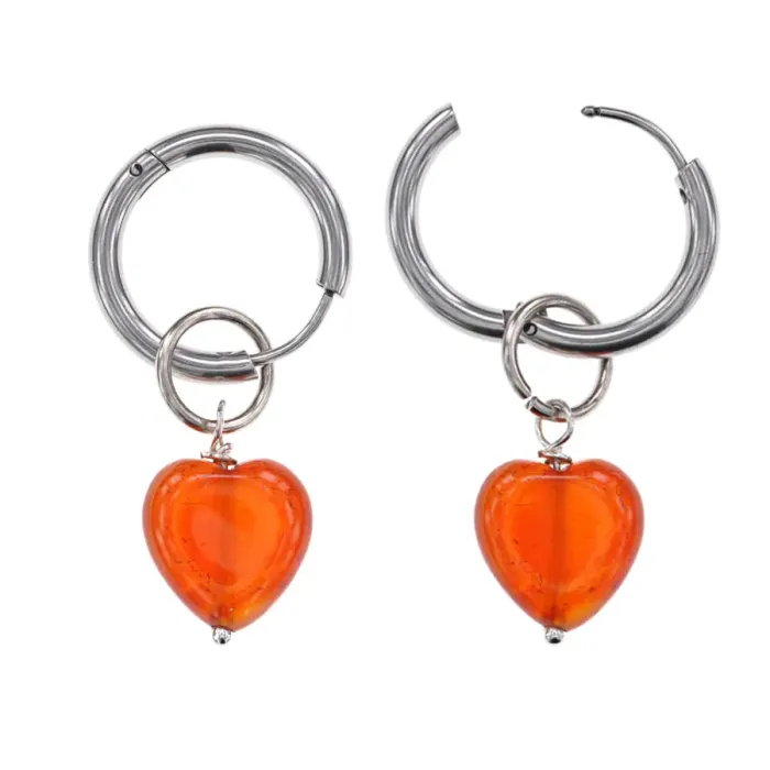 Серьги Сердце с нат.камнем Сердолик SEC-02-01