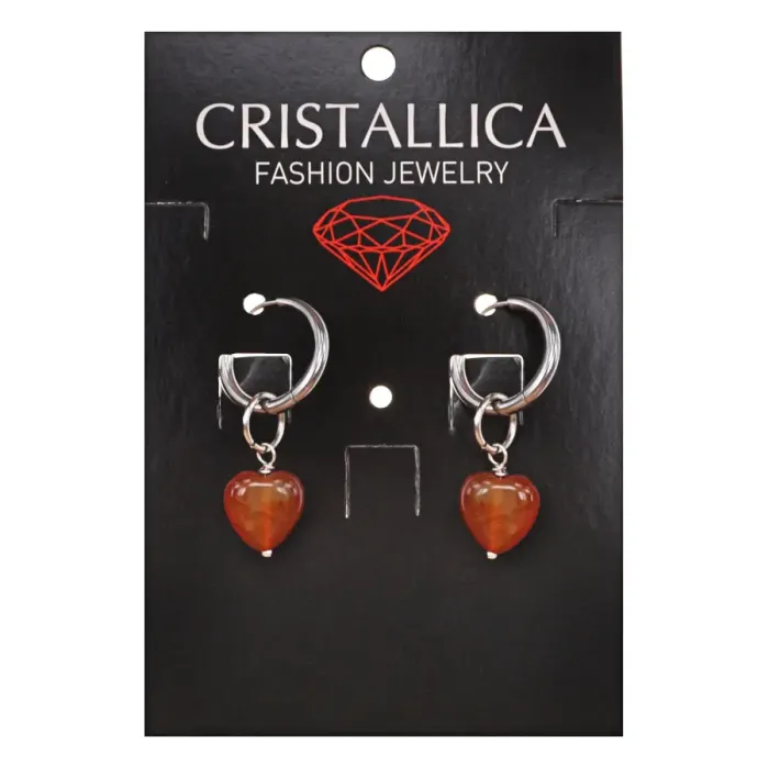 Серьги из коллекции Cristallica. Симметричный дизайн в форме сердца, украшенный натуральным сердоликом.