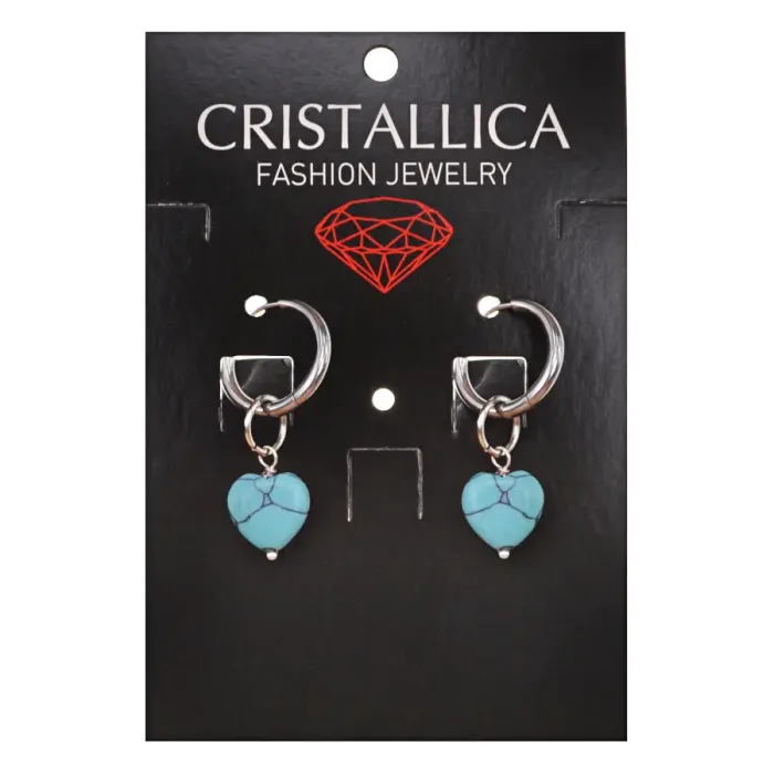 Материал и изготовление: Гипоаллергенный сплав, синтетический камень бирюза, швензы типа Конго.