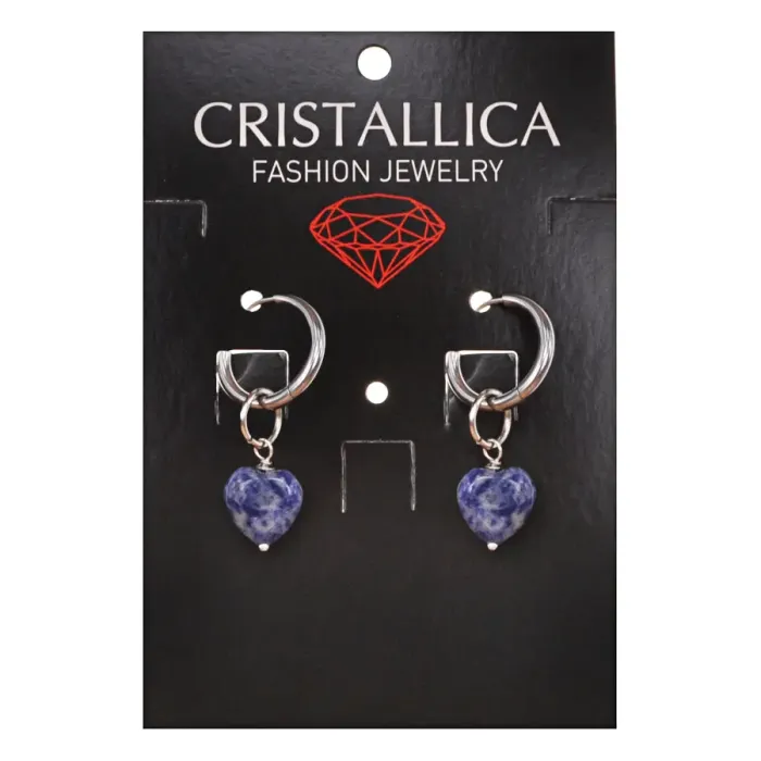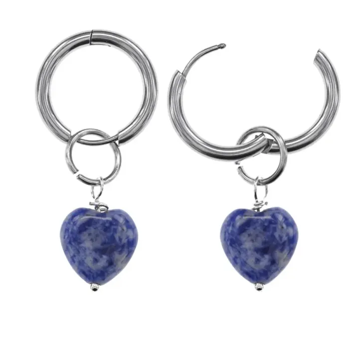 Серьги в форме сердца из гипоаллергенного сплава с натуральным камнем содалит.