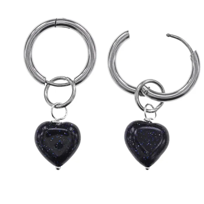 Серьги-сердца из гипоаллергенного сплава с синтетическим камнем синий авантюрин.