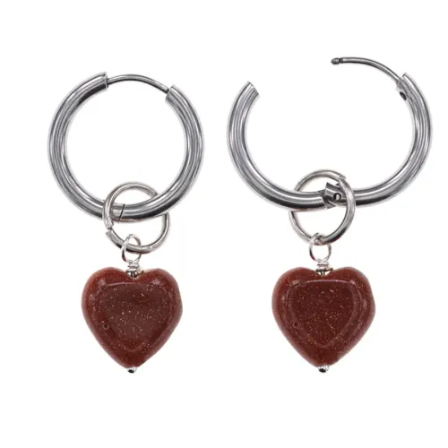 Серьги в форме сердца из гипоаллергенного сплава с синтетическим камнем коричневый авантюрин.