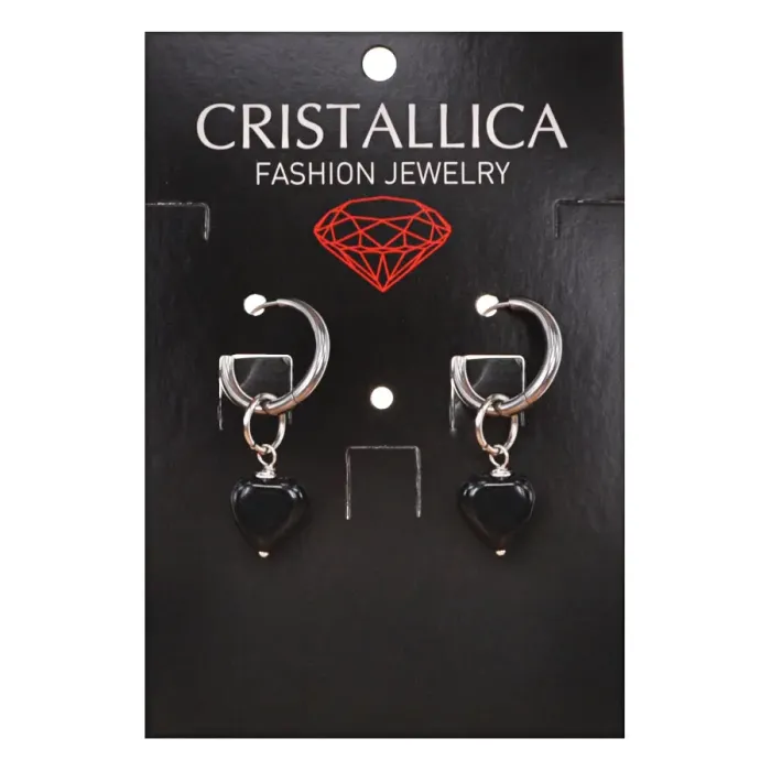 Серьги Сердце с нат.камнем Черный агат SEC-02-10
