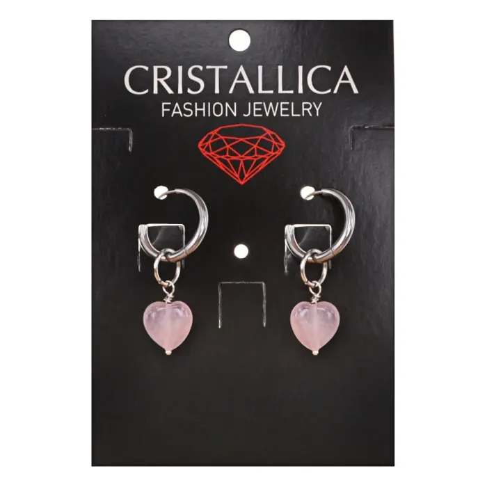 Серьги Сердце с нат.камнем Розовый кварц SEC-02-12