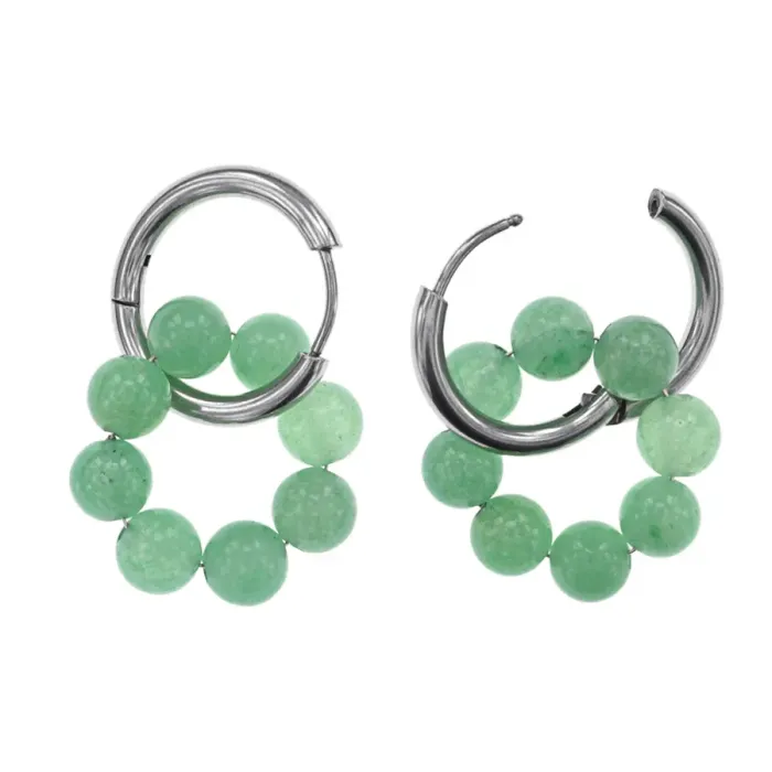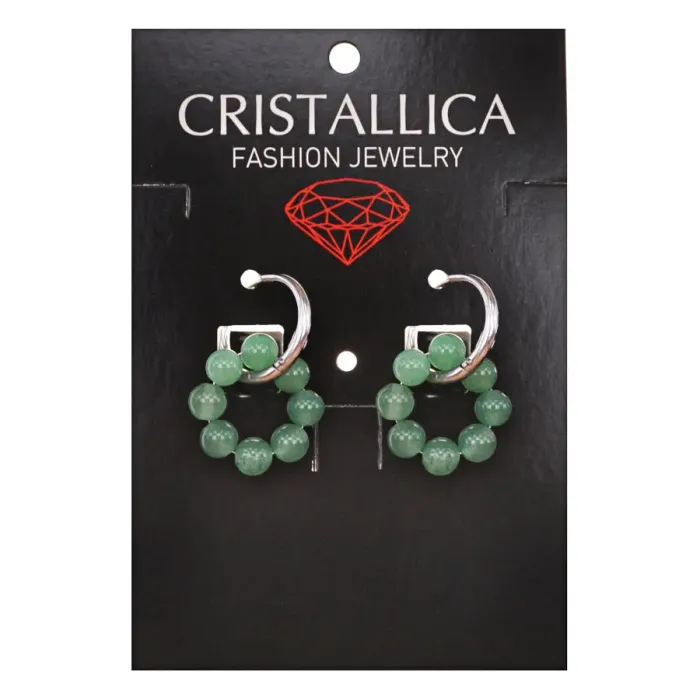 Серьги-конго из коллекции Cristallica с восемью бусинами и швензами. Изготовлены из гипоаллергенного сплава и натурального нефрита, являются ручной работой.