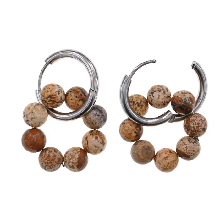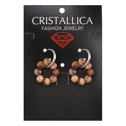 Серьги-конго для ношения, выполненные из гипоаллергенного сплава и натуральной песочной яшмы, состоят из 8 бусин.