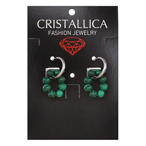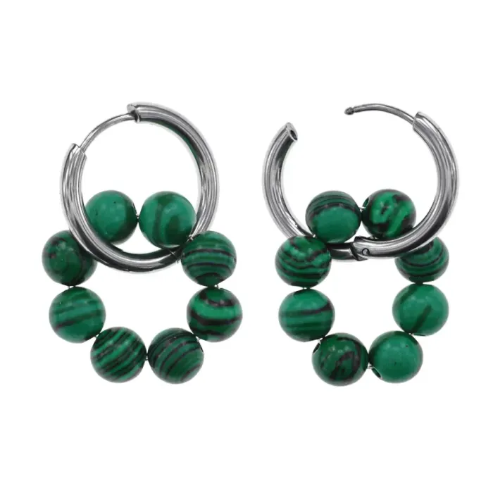 Серьги Конго 8 бусин с синтетическим камнем Малахит SEC-03-05