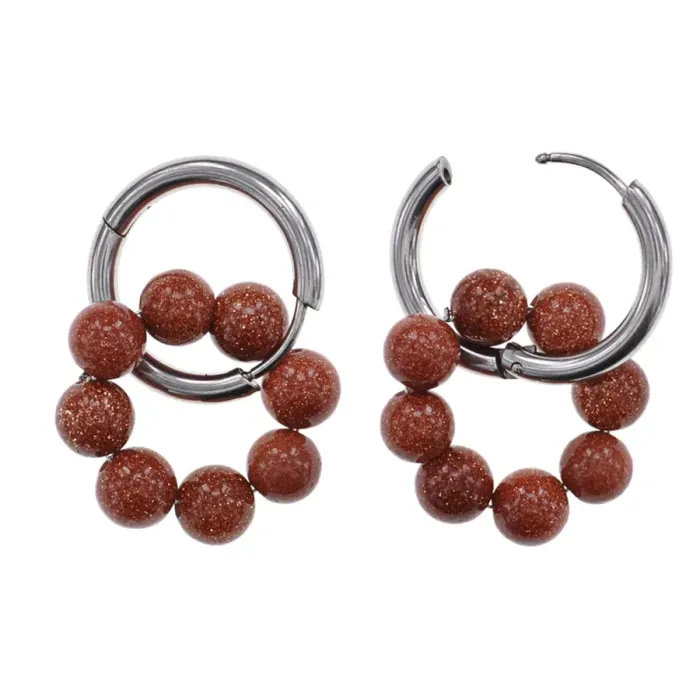 Серьги-конго из гипоаллергенного сплава с восемью бусинами и синтетическим камнем коричневый авантюрин.