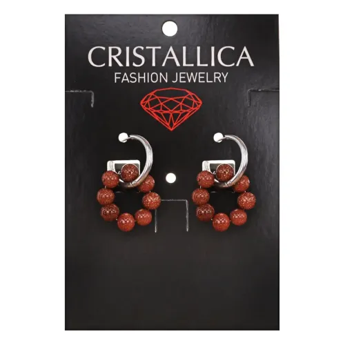 Серьги Конго 8 бусин с синт. камнем Коричневый авантюрин SEC-03-09