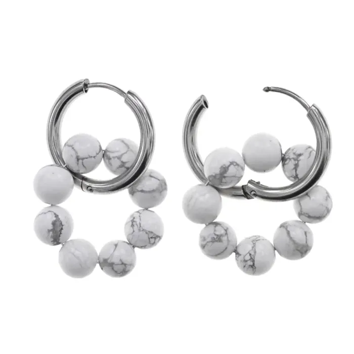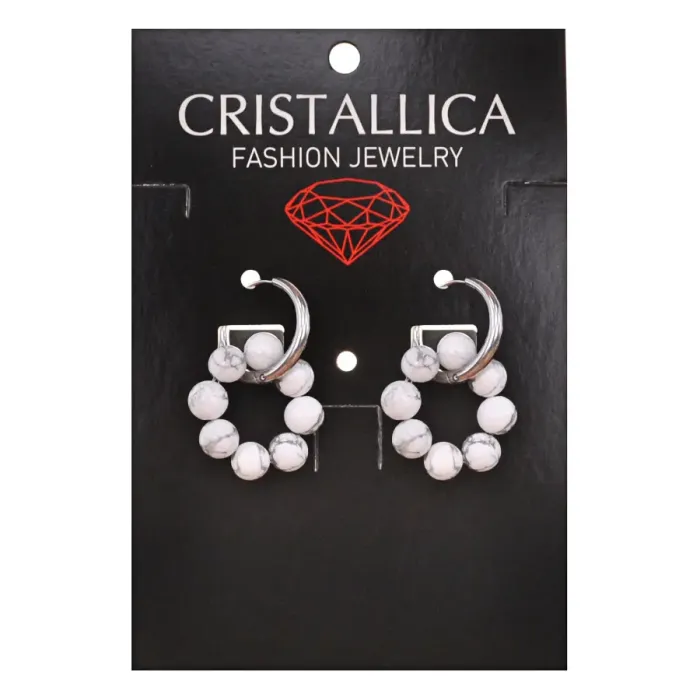 Серьги-конго из коллекции Cristallica. Изготовлены вручную, состоят из 8 бусин натурального камня кахолонг и швенз из гипоаллергенного сплава.