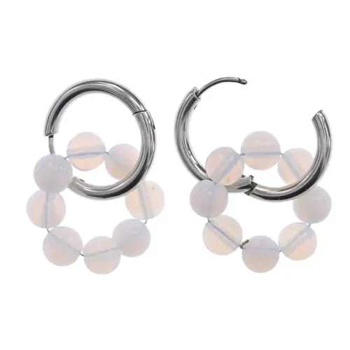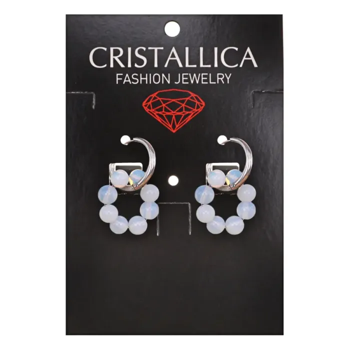 Материал и изготовление: Гипоаллергенный сплав, синтетический камень опалит (лунный камень). Ручная работа.
