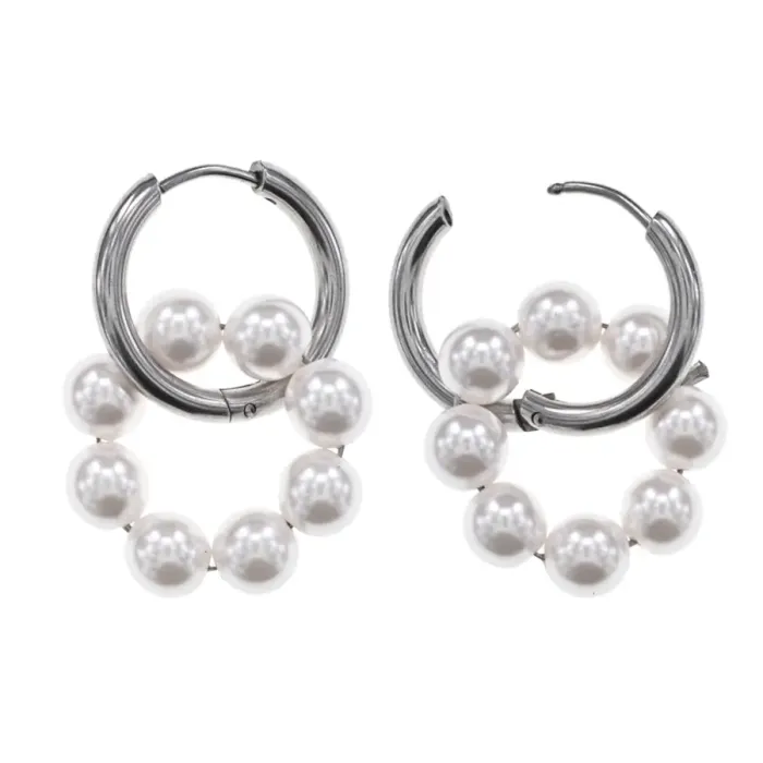Серьги Конго 8 бусин с иск. жемчугом SEC-03-14
