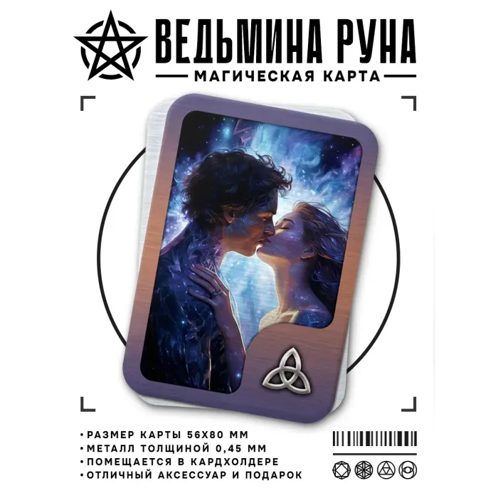 Магическая карта с викканской символикой — это уникальный сувенир, который способен привнести в жизнь страсть и любовь. Изготовленная из металла толщиной 0,45 мм, она обладает прочностью и долговечностью. Размер карты составляет 56х80 мм, что делает её удобной для хранения или использования в ритуалах. Упакована в прозрачный пакетик с описанием, она станет отличным подарком для тех, кто интересуется магией и эзотерикой. Традиционно считается, что эта карта способствует бурным отношениям с глубокими эмоциональными связями и длительной привязанностью.