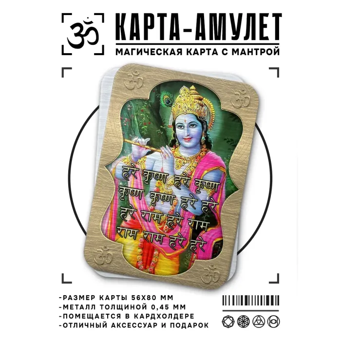 Карта-амулет с мантрой Харе Кришна — это магический предмет, который способен изменить восприятие реальности. Изготовленная из металла толщиной 0,45 мм и размером 5,6х8 см, она поставляется в пакетике с описанием. Сосредоточение на изображении и мантре бога Харе Кришны создает особую вибрацию, способствующую привлечению желаемых событий. Эта карта традиционно используется для духовной практики и медитации, помогая углубить связь с высшими силами.