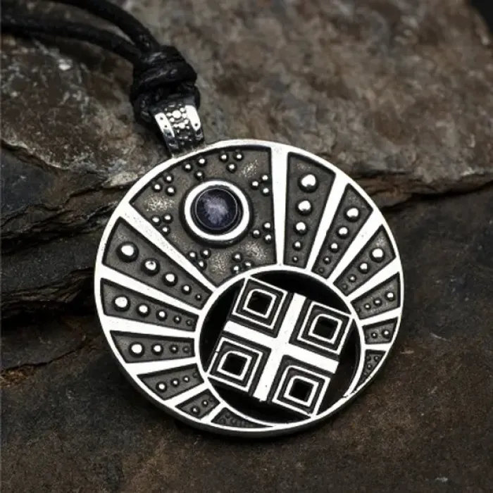 Амулет Лунница с Макошью с камнем аметист, 35х42мм, металлический 72214