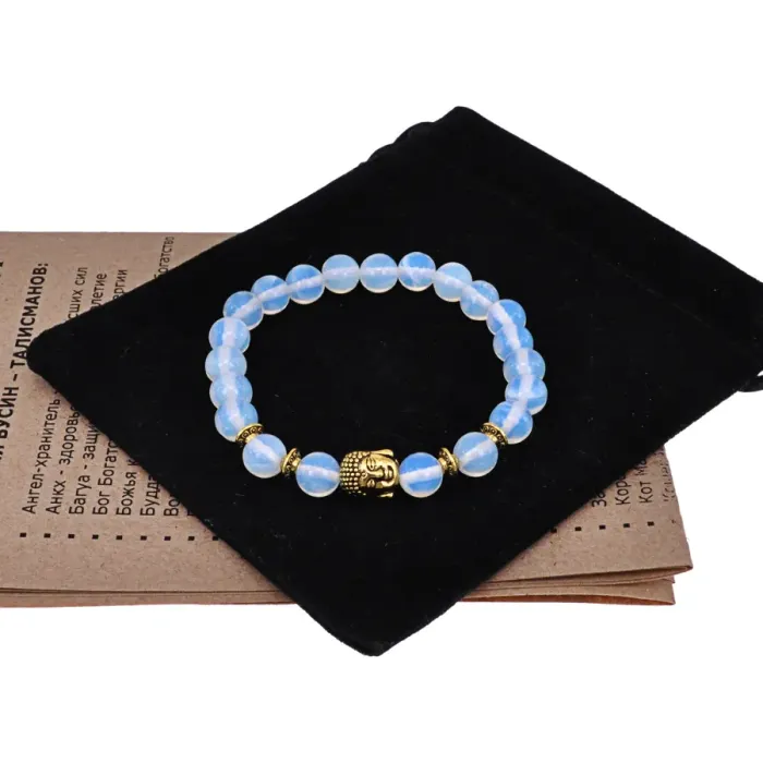 Браслет-амулет Будда с синт. камнем Лунный камень 8мм BSH-01-11