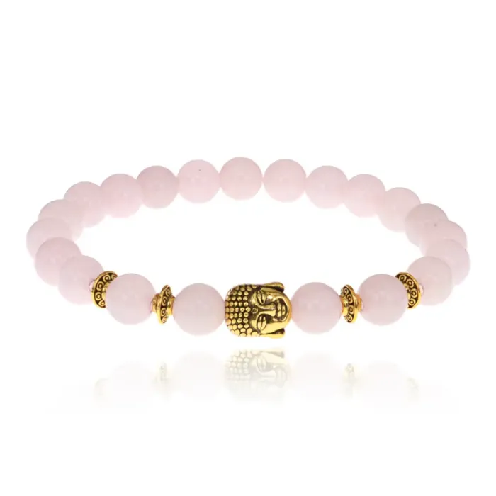 Браслет-амулет Будда с нат. камнем Розовый кварц 8мм BSH-01-15