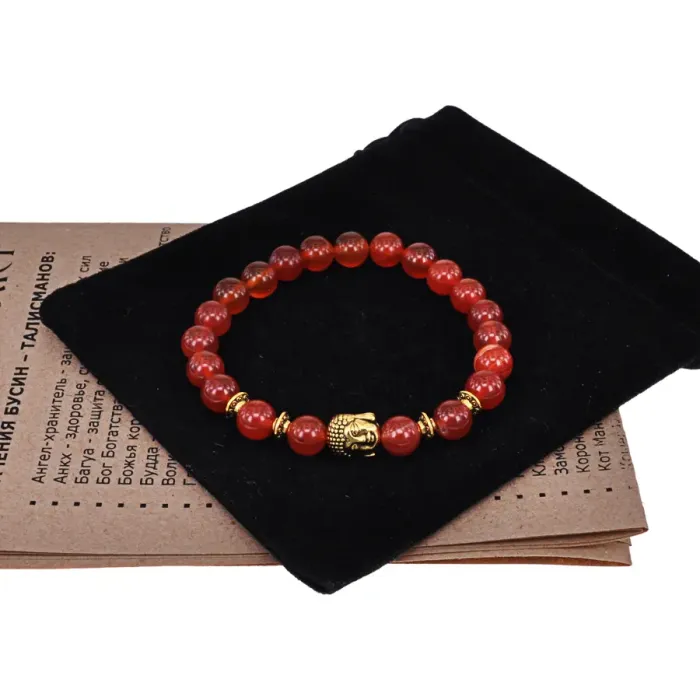 Браслет-амулет Будда с нат. камнем Сердолик 8мм BSH-01-17