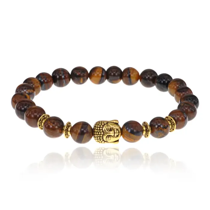 Браслет-амулет Будда с нат. камнем Тигровый глаз 8мм BSH-01-19