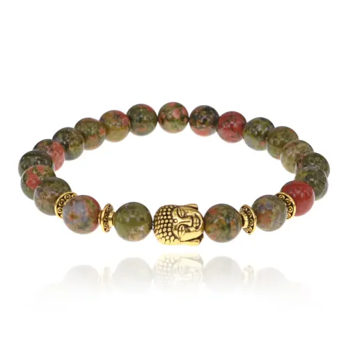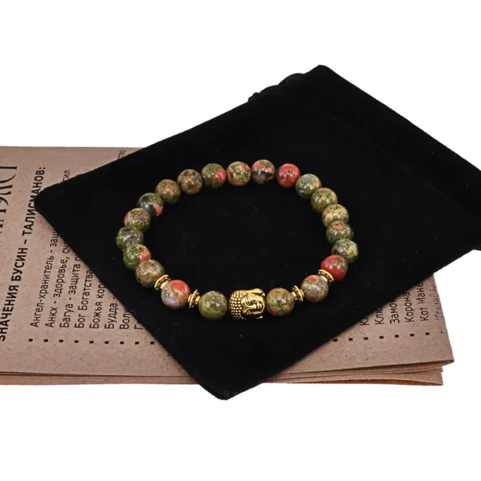 Браслет-амулет Будда с нат. камнем Унакит 8мм BSH-01-20