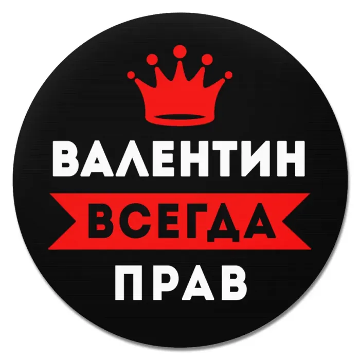 Коврик для компьютерной мыши с именным изображением «Валентин Всегда прав». Диаметр 20 см.