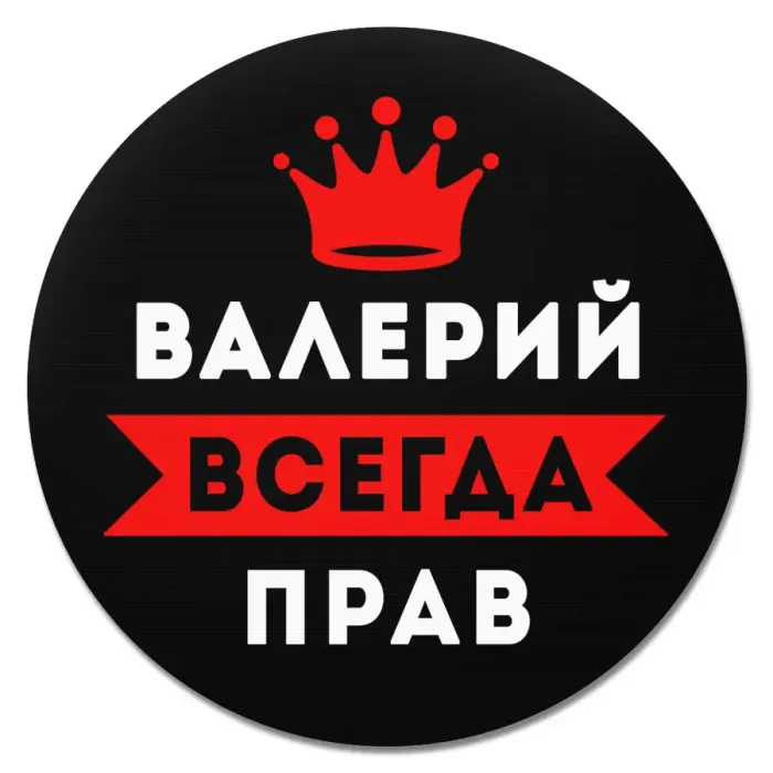 Коврик для мыши именной Валерий Всегда прав, d.20см KM1258