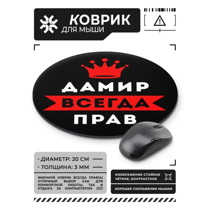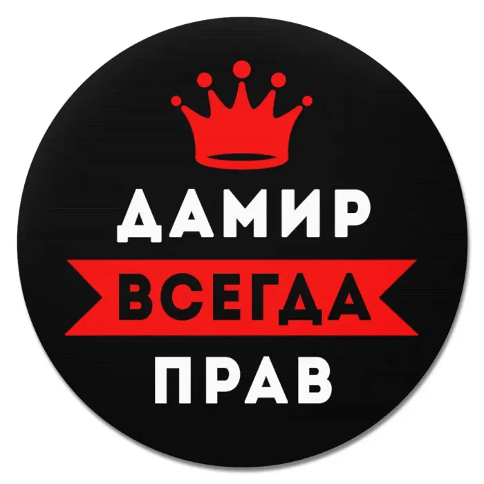 Коврик для мыши именной Дамир Всегда прав, d.20см KM1271