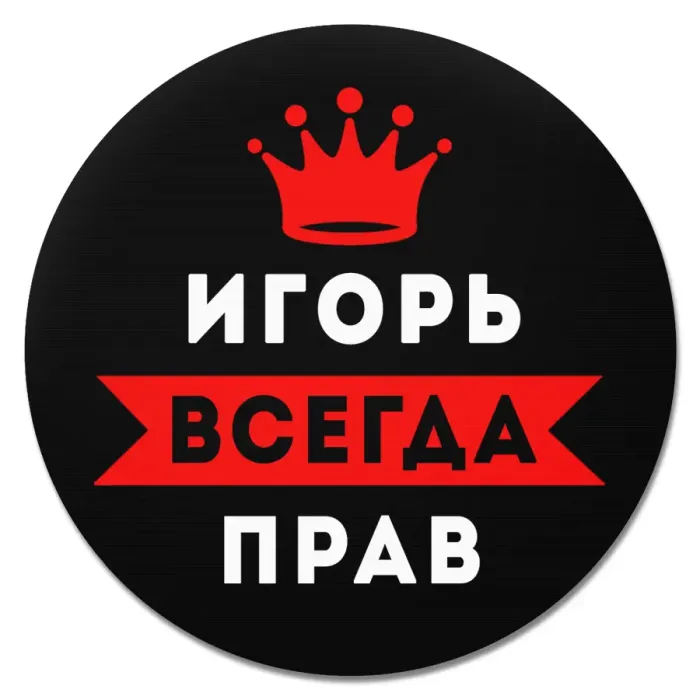 Коврик для мыши именной Игорь Всегда прав, d.20см KM1283