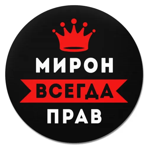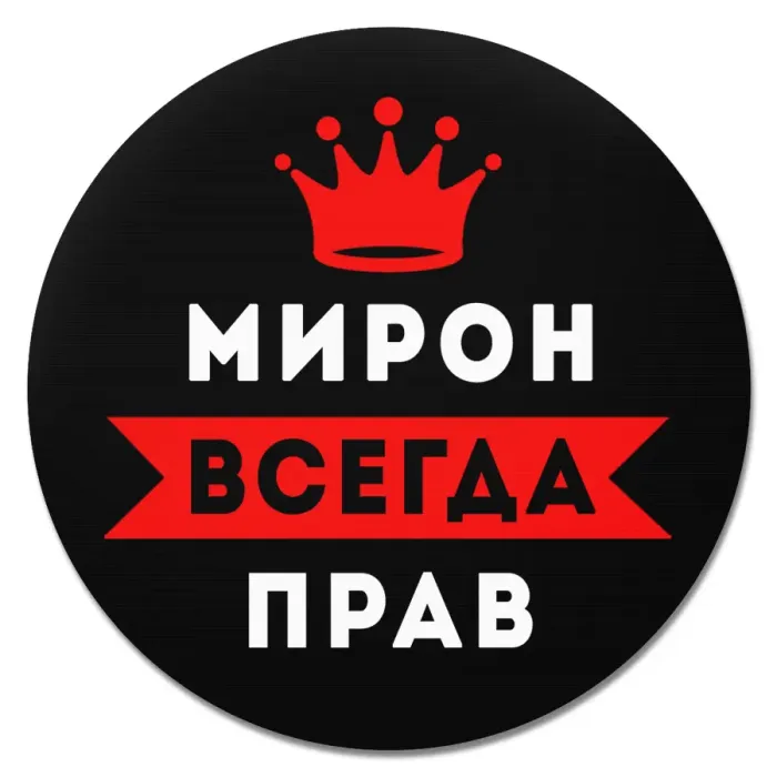Именной коврик для компьютерной мыши диаметром 20 см с изображением «Мирон Всегда прав».