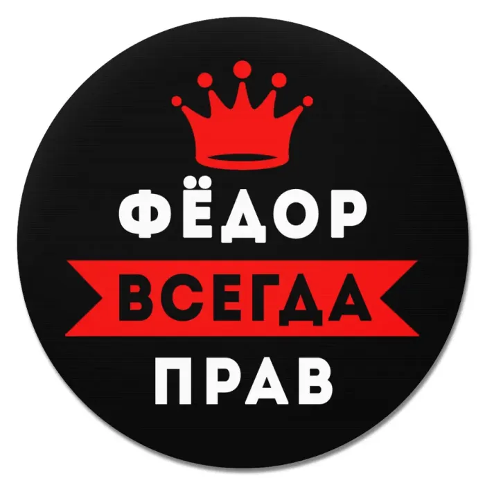 Коврик для мыши именной Федор Всегда прав, d.20см KM1319