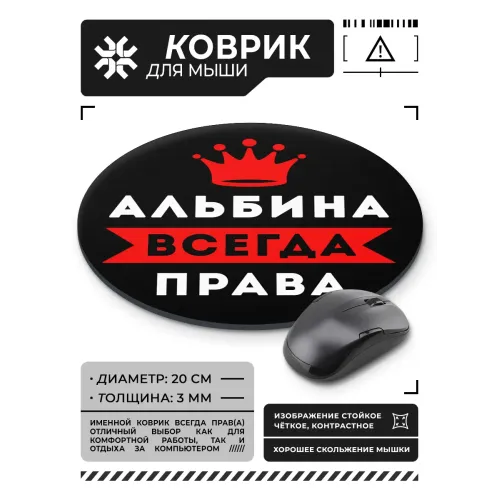 Коврик для мыши именной Альбина Всегда права, d.20см KM1335