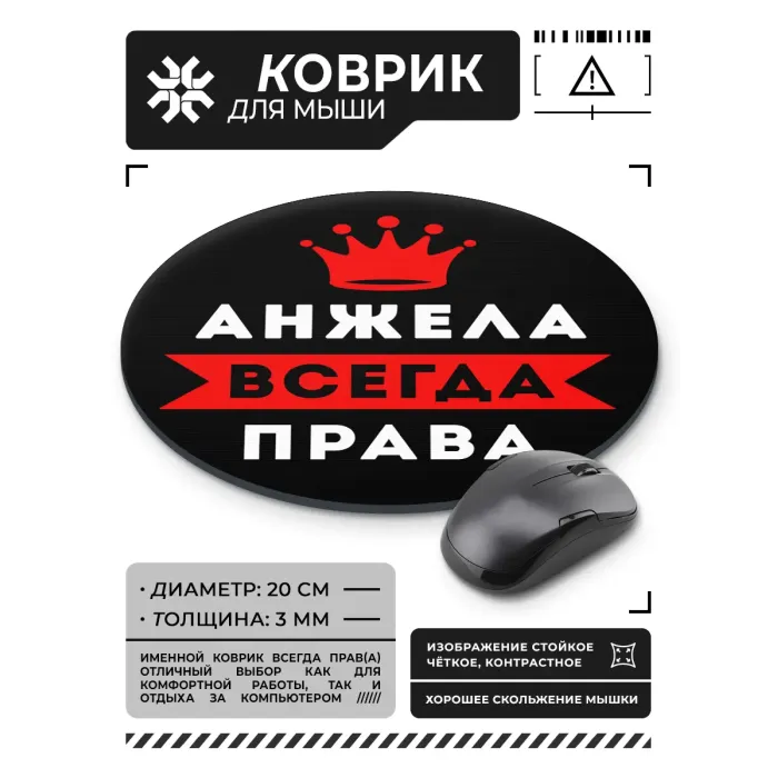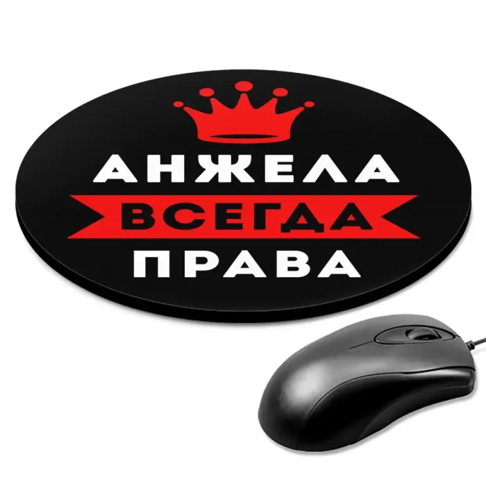 Коврик для мыши именной Анжелика Всегда права, d.20см KM1338