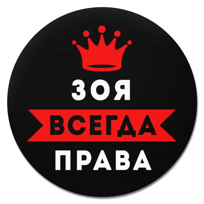 Коврик для мыши именной Зоя Всегда права, d.20см KM1360