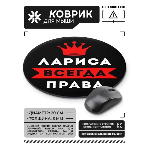 Коврик для мыши именной Лариса Всегда права, d.20см KM1370