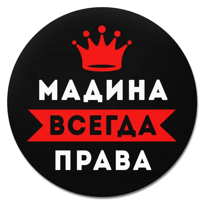 Коврик для мыши именной Мадина Всегда права, d.20см KM1378