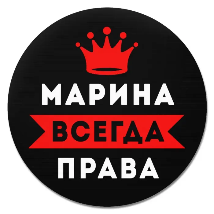 Коврик для мыши именной Марина Всегда права, d.20см KM1381