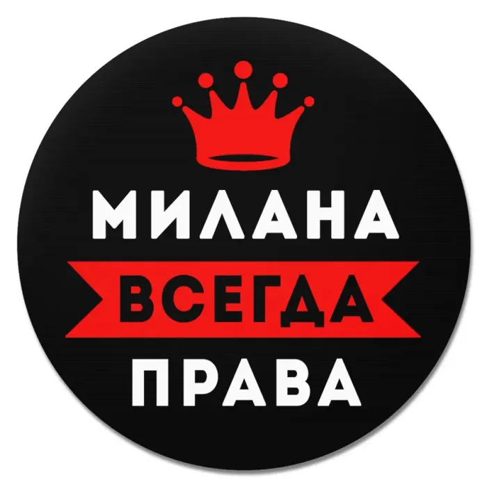 Коврик для мыши именной Милана Всегда права, d.20см KM1384