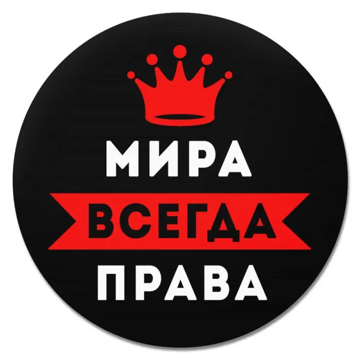 Коврик для мыши именной Мирослава Всегда права, d.20см KM1385